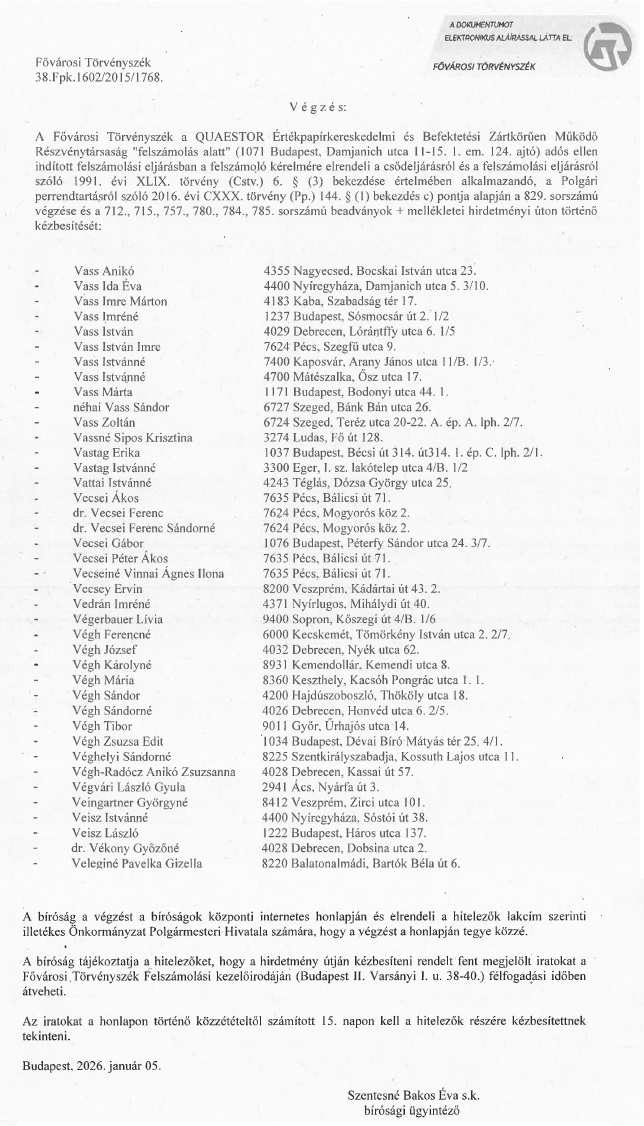 Dede János Végzés (Hajdúszoboszlói Járásbíróság)