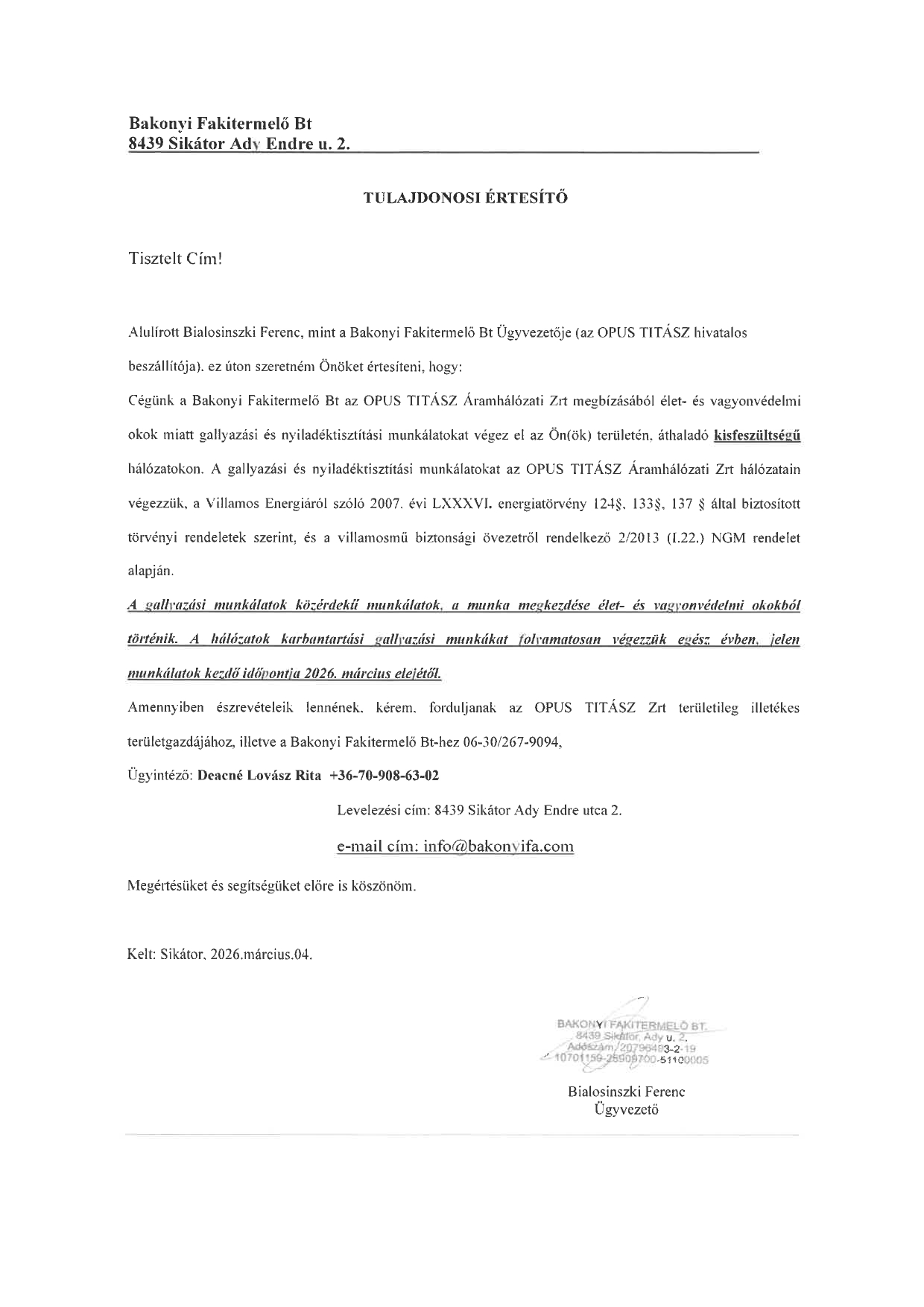 Gallyazási munkálatok az OPUS TITÁSZ hálózatain
