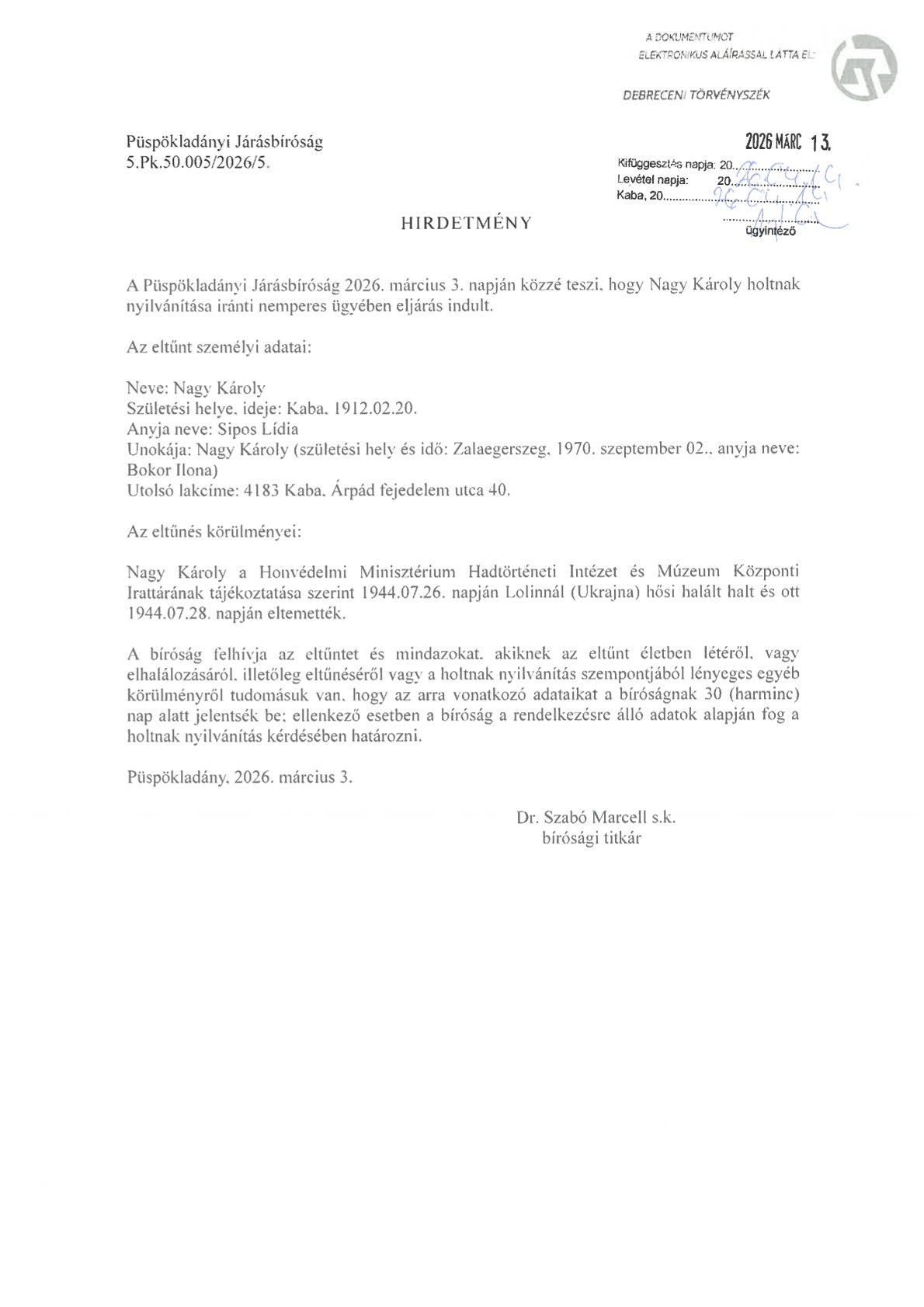 Hirdetmény