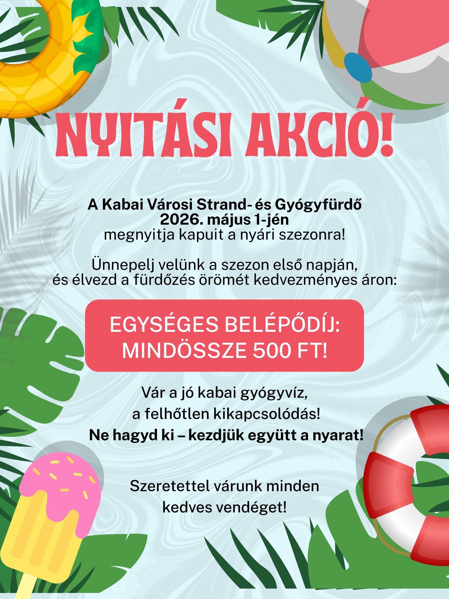 - Nyitási akció! – A Kabai Városi Strand- és Gyógyfürdő